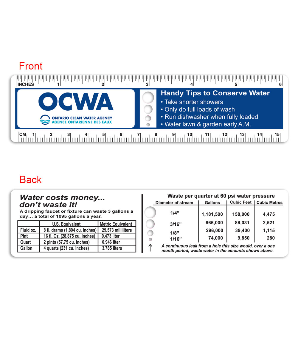 This handy 6-inch ruler, made from durable plastic, helps your residents measure more than just one thing! In addition to its obvious use, it also helps people gauge the impact of water leaks in their home. It’s a useful and practical item that demonstrates your commitment to saving water.