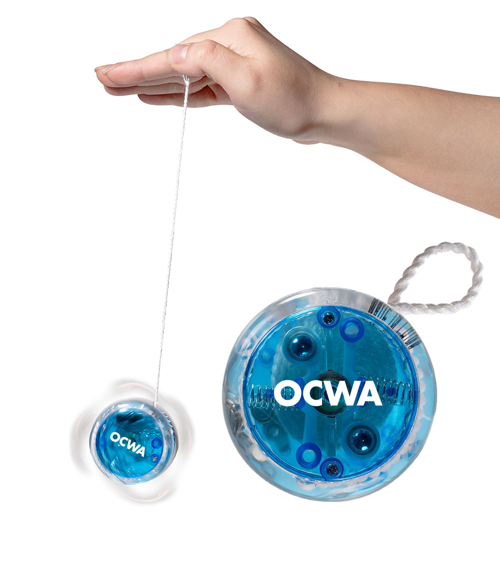 - Yo yo with translucent PS Plastic exterior, featuring red blinking light