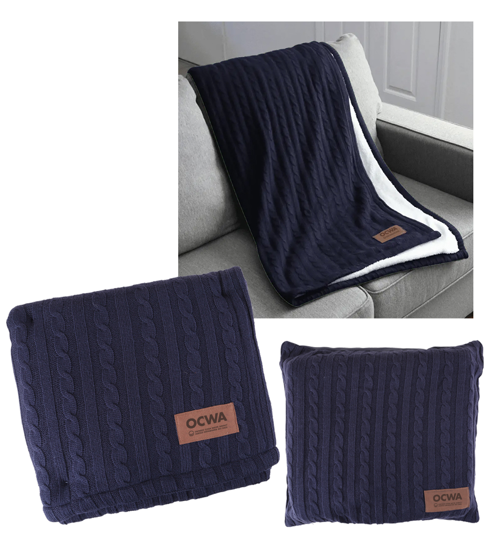 This Sweater Weather Sherpa blanket is bound to become their new favorite throw for the home. The stylish knitted sweater appearance instantly makes this blanket look comfy, while the soft Sherpa lining keeps you warm and cozy. When the blanket is not in use, store it in the matching style pillowcase cover. That's right, this product can be used as a blanket and a pillow. The elegant matching leatherette patches and invisible zipper on the pillow keep any brand looking classy.