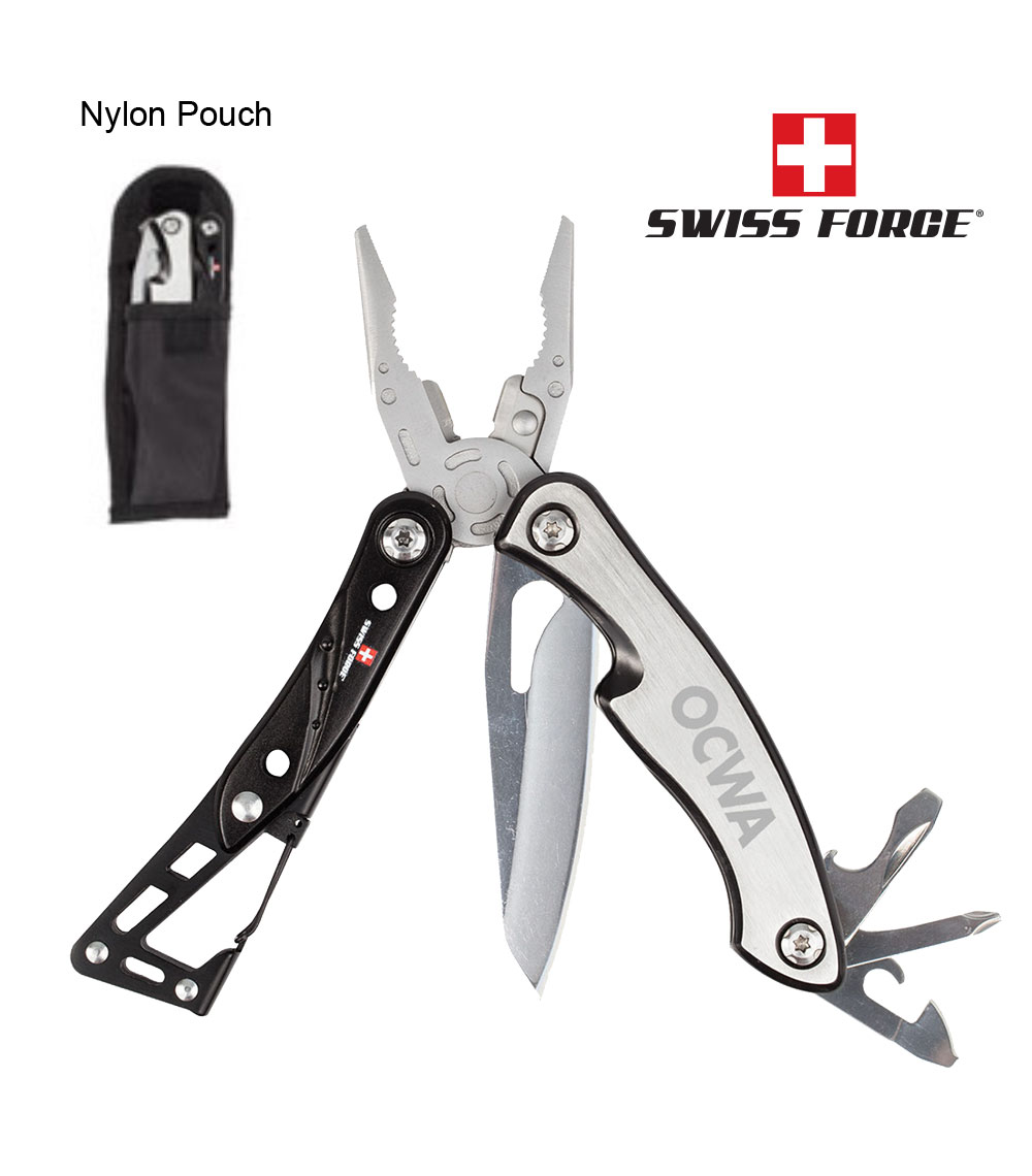 - Black anodized stainless steeltools include: 2” blade, wire cutter, needle nose pliers, pliers, can opener/ line blade, slot screwdriver and Philips screwdriver